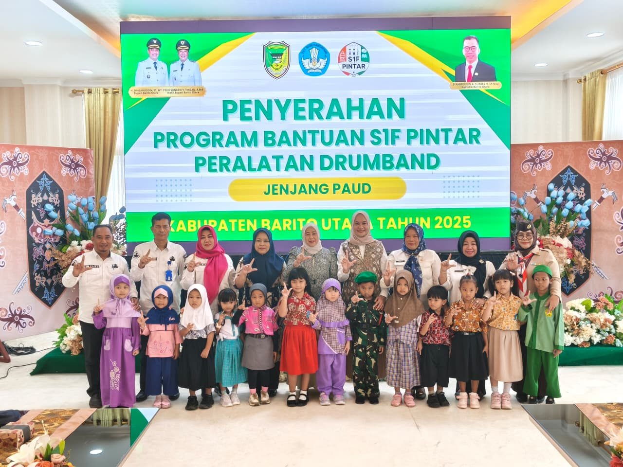 Muara Teweh 24 Desember 2025 – Pemerintah Kabupaten Barito Utara melalui Program SIF Pintar menyerahkan bantuan peralatan drumband bagi satuan Pendidikan Anak Usia Dini (PAUD) di Kabupaten Barito Utara. Bantuan tersebut secara simbolis diserahkan oleh Bunda PAUD Kabupaten Barito Utara, Maya Savitri Shalahuddin, kepada 15 sekolah PAUD.